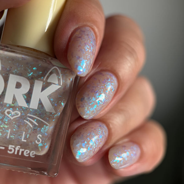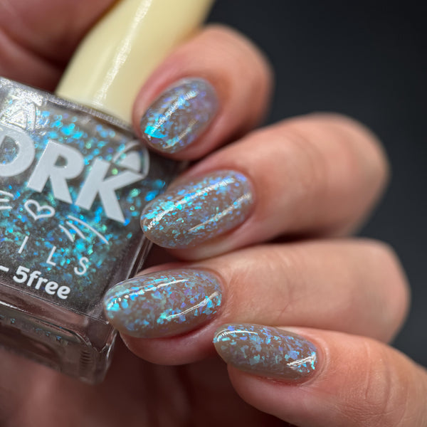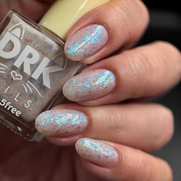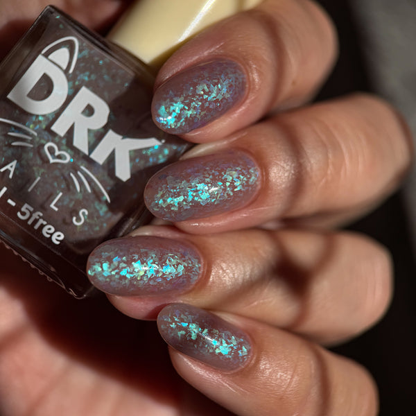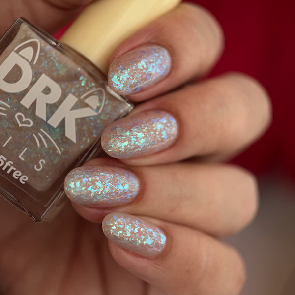 A Chill in the Air is a solar polish (gray to clear) mixed with chameleon pastel flakes.